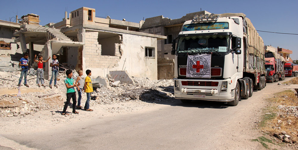 Kızılhaç Komitesi’nden yapılan açıklamaya göre 29 kamyondan oluşan yardımın 50 bin kişiye yönelik olduğu belirtildi.