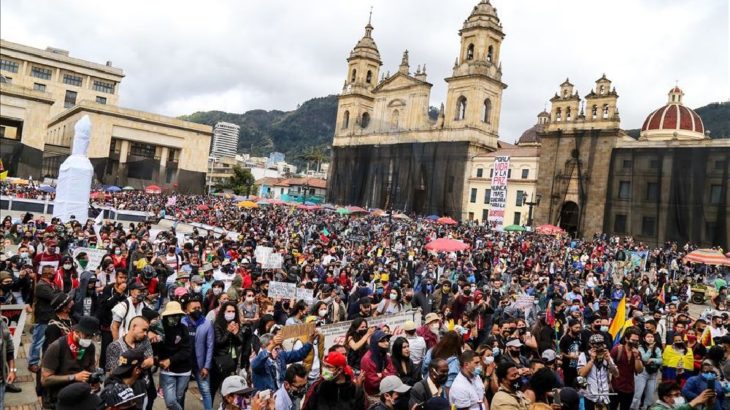 Bogota’da yerli toplulukların ve çeşitli kesimlerin katılımıyla artan şiddet olayları, cinayet ve saldırılar nedeniyle Ivan Duque hükümeti protesto edildi.