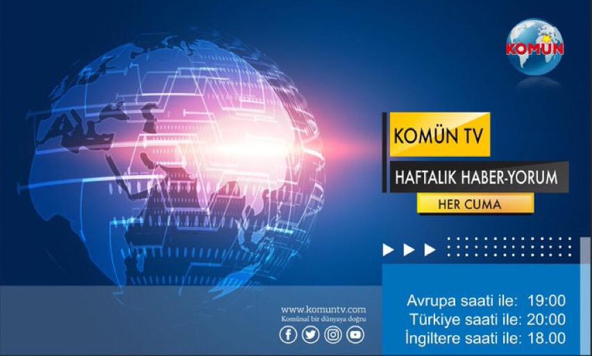Emre Erdal ve Zafer Yılmaz’ın yorumlarıyla Komün Haber-Yorum programı bugün Türkiye saatiyle 20:00’da Komün TV sosyal medya hesaplarından izleyebilirsiniz.