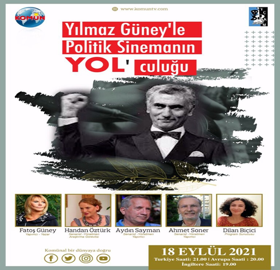 Yılmaz Güney’in 37’inci ölüm yıldönümü dolayısı ile bir etkinlikte Komün TV ve YÇKM tarafından ortak yapılacak olan özel bir programla gerçekleştirilecek.18 Eylül günü TR saati ile 21:00’de başlayacak olan programın sunuculuğunu Dilan Biçici yapacak.