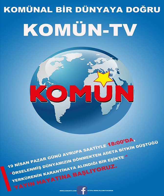 İnternet televizyon kanalı olarak tasarlanan Komün TV, yayın hayatına başlıyor. Kanalın tanıtım videosunda, “Komün Tv, insanlığın ezici çoğunluğunun bu kadim düşünün, yani eşitlik ve özgürlük özleminin kendi çapında güncel sesi, taşıyıcı öznesi olmayı hedeflemektedir” denildi.