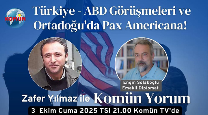 Her hafta cuma günleri Komün TV’de yayınlanan, Zafer Yılmaz’ın hazırlayıp sunduğu Komün Yorum programı bu akşam Türkiye saatiyle 21.00’de başlayacak.