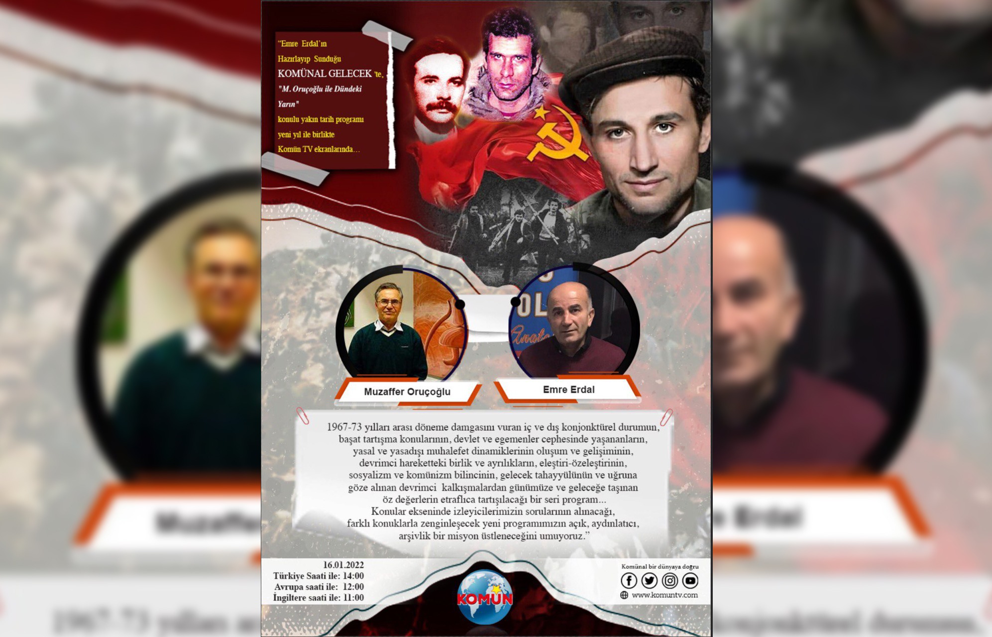 Komün TV’de yayın yapan ve Emre Erdal’ın hazırlayıp sunduğu Komünal Gelecek programı yeni yılda “Muzaffer Oruçoğlu ile Dündeki Yarın” konusuyla izleyici karşısına çıkacak.