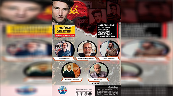 Yazar Volkan Yaraşır, Yazar-Ressam Muzaffer Oruçoğlu, İbrahim Kaypakkaya’nın kardeşi Ali Ekber Kaypakkaya ve Halkın Günlüğü Gazetesi’nden Tahir Demirtaş’ın konuk olacağı programı bugün Türkiye saatiyle saat 14.00’te Komün TV’nin Youtube kanalından canlı olarak izleyebilirsiniz.