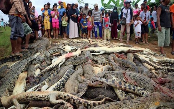 Endonezya’nın Sorong bölgesindeki Aimas köyünde bulunan timsah çiftliğindeki bir timsah civardaki köylülerden birini öldürdüğü gerekçesiyle köylüler çiftliği bastı. 292 timsahı pala, çekiç ve baltalarla katletti.