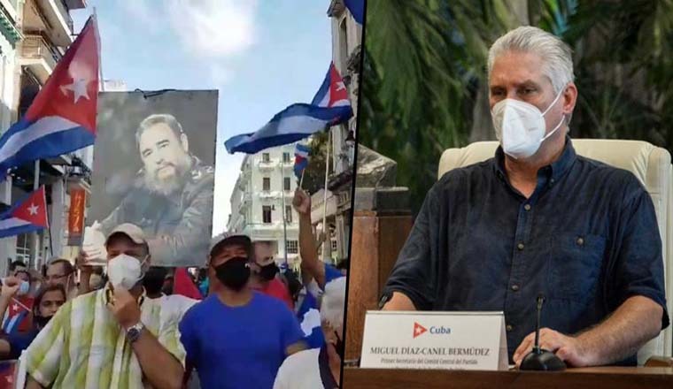 Küba Devlet Başkanı Diaz-Canel, ABD’nin provokasyonu’na ilişkin ‘Bu ülkenin egemenliğini ve bağımsızlığını teslim etmeyeceğiz. Devrimi yok etmek için cesetlerimizi çiğnemeleri gerekir’ açıklamasında bulundu.