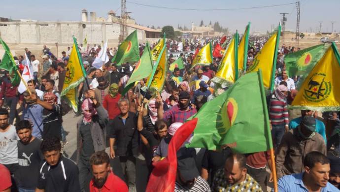 AKP Genel Başkanı ve Cumhurbaşkanı Recep Tayyip Erdoğan’ın dün partisinin Ankara Kızılcahamam’da düzenlediği kampta yaptığı konuşmada Kuzey ve Doğu Suriye’ye dönük askeri operasyon tehdidini sürdürmesi üzerine duruma tepki göstermek amacıyla Hesekê Kantonu’na bağlı Serêkaniyê ve Hesekê kentlerinde toplanan farklı halklardan binlerce kişi sınıra yürüyor. Cumhurbaşkanı’nın dün konuşmasında belirttiği askeri operasyonu işgal girişimi olarak değerlendiren halklar, operasyona karşı halkların birliğini vurgulayan sloganlarla Til Xelef beldesine doğru ilerliyor.