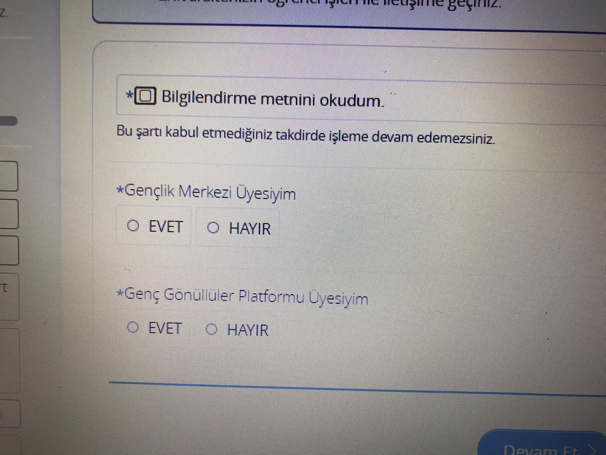 Başvuru yapan öğrencilere, AKP’nin uzun yıllardır gençlik çalışmalarını yürüttüğü Gençlik Merkezi ve Genç Gönüllüler Platformu üyesi olup olmadığı soruldu.
