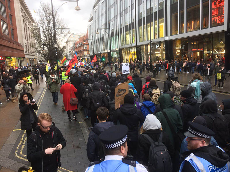 Marble Arch semtinden İngiliz Parlamentosuna kadar yapılan yürüyüşe Britanyalı devrimci gruplar da katıldı.