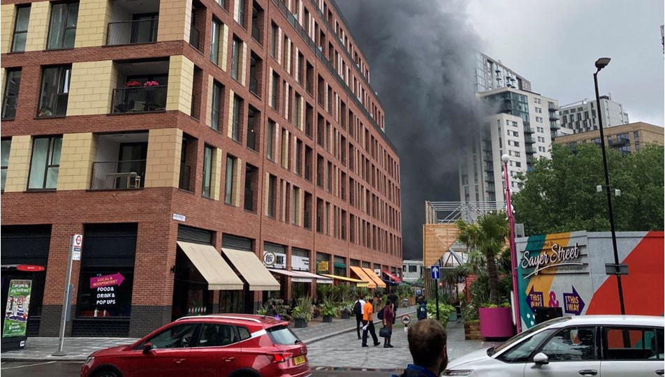 Londra İtfaiyesi, 10 itfaiye aracının ve 70 itfaiyecinin üç ticari birimin arasından geçerek trenlerin yönünü değiştirmesine neden olan yangına müdahale ettiğini söyledi.