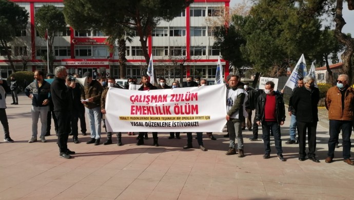 Çalışıp emekli olan madencilerin çeşitli hastalıklarla boğuştuğunu kaydeden Erkalkan, madencilere reva görülen en düşük sınırda ödenen emeklilik aylıklarına isyan etti. Yeni zamla 8 bin 500 TL aylık ücret alan maden işçisinin emekli olunca 3 bin TL aylık aldığını belirten Erkalkan, “Hiçbir iş kolunda aldığı maaşla, aldığı emekli aylığı arasında bu kadar uçurum olan bir kesim söz konusu değildir. Önümüzdeki dönem seçime doğru gidiyoruz. Soma, Kınık, Kırkağaç, Savaştepe’de madencilerin karşısına çıkacak siyasi partiler öncelikle bu konuda ne yapacakları taahhüt etmelidirler. Madenci aylıklarını kemiren, patron yalaması sarı sendikalar madencilerin yaşadığı bu sefalete ses çıkarmıyorlar. Onların da sonu yakındır” diye belirtti.
