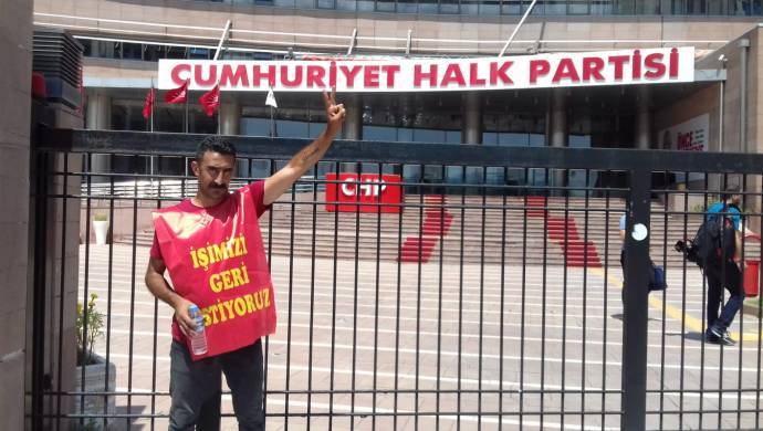 İzmir Büyükşehir Belediyesi’ndeki işlerine son verildiği için 183 gün açlık grevi yapan Konak Direnişçileri’nden Mahir Kılıç, Karşıyaka Belediyesi’yle imzaladığı işe dönüş protokolünün uygulanmaması nedeniyle CHP Genel Merkezi önünde oturma eylemine başladı