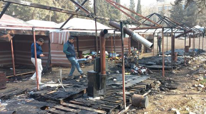 7 çadır, kullanılamaz hale gelirken, buralarda kalanlar, başka çadırlara yerleştirildi. Polis, inceleme başlattı.