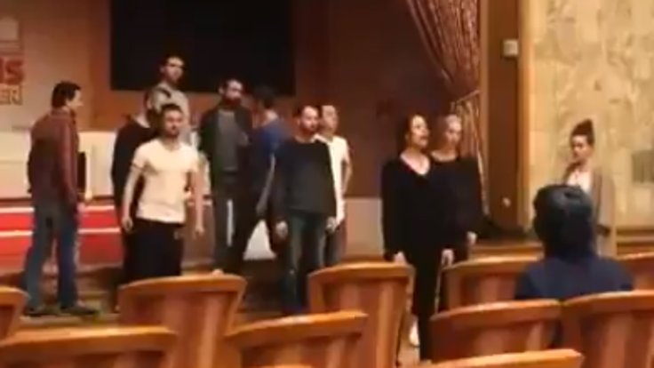 Meclis’te düzenlenen etkinlikteki tiyatro gösteriminde kadın oyuncular sahneye çıkarılmamıştı.