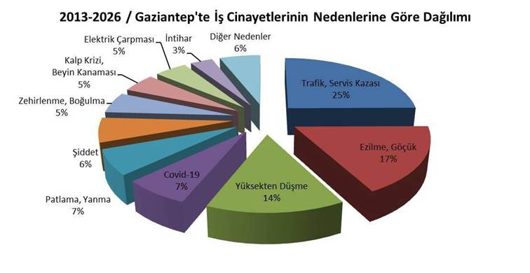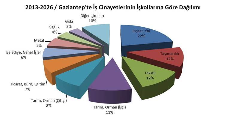 İSİG, özellikle sanayi ve lojistiğin merkezi olan Şehitkâmil ile Şahinbey’de tekstil, metal, gıda, ağaç, belediye ve hizmet sektörlerindeki ölümlerin yoğunlaştığını; diğer ilçelerde ise tarım işkolundaki ölümlerin arttığını belirtti.