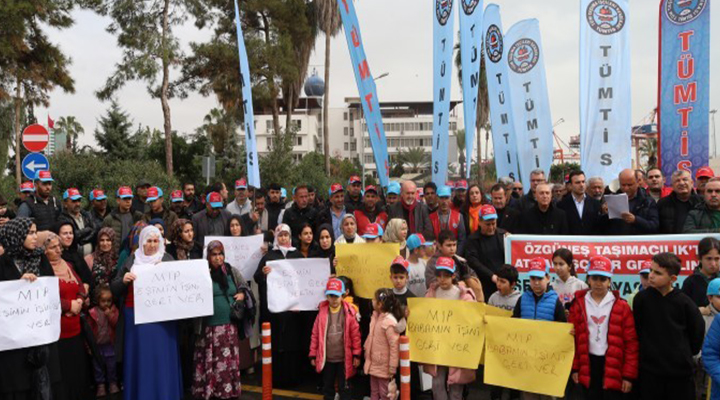 Mersin Limanı’nda (MIP) faaliyet gösteren Özgüneş Taşımacılık, Tüm Taşıma İşçileri Sendikası (TÜMTİS) üyesi 180’den fazla işçiyi sendikalı oldukları gerekçesiyle işten çıkardı. İşten çıkarılan işçiler, sendika ve aileleriyle birlikte 1 Ocak’tan bu yana liman önünde eylemde ve işe geri iade edilerek, sendikal haklarının tanınmasını istiyor.