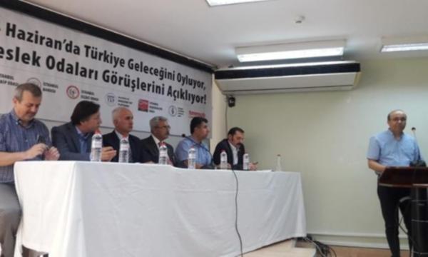 Ortak açıklamayı okuyan İstanbul Meslek Odaları Koordinasyonu Sekreteri Süleyman Solmaz 24 Haziran’da demokratik ve güvenli bir seçim ortamı istediklerini söyleyerek “OHAL koşullarında değil vatandaşlık haklarının özgürce kullanıldığı seçimlerin olduğu bir gelecek için karar vereceğiz. Eşit, adil koşullarda yarışacağımız ve güvenli bir seçim ortamında demokratik bir seçim istiyoruz. 24 Haziran, demokrasi için, huzur için, barış için, bir arada yaşama kültürümüzü yeniden kurmak için yeni bir başlangıç olsun” diye konuştu.