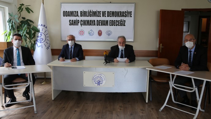 Ortak açıklamayı yapan ATO Başkanı Vedat Bulut, iktidarın meslek birliklerine karşı tutumunun ilk olmadığına dikkati çekerek, “2002 yılında iktidar olduktan sonra uyguladığı ekonomi politikalarına karşın; meslek birlikleri ve meslek odalarının meslektaşlarından ve halktan yana durması, toplum yararını önceleyen ve demokratik bir ülkede eşit yurttaşlık temelinde barış içinde yaşamayı amaçlayarak mesleki yükümlülerinin yerine getirmeleri mevcut iktidarı rahatsız etmiştir. Diyanet İşleri Başkanlığı’nın toplumun bir kısmını ötekileştirici söylemine karşı Ankara ve Diyarbakır barolarının tutumu siyasi iktidarı elinde bulunan Demokles’in kılıcını kınından çıkarmasına, meslek birliklerine karşı kullanmasına bahane edilmiştir” dedi.