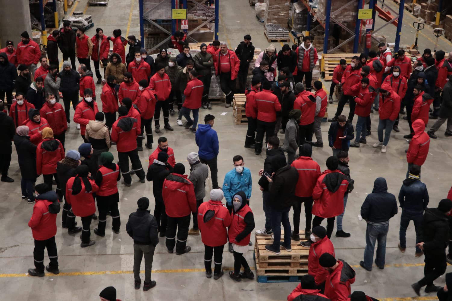 Esenyurt Migros depo önü polis tarafından abluka altına alındı, içeri gözaltı araçları sokuluyor.