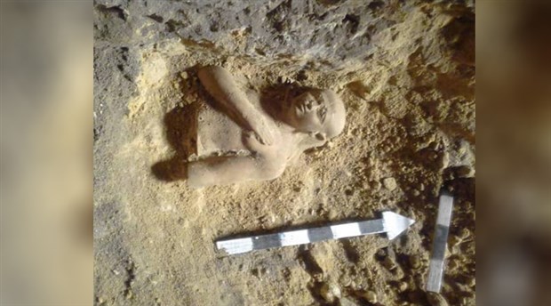 Mısır’ın Fayyum kentinde yer alan bir Orta Krallık (MÖ 1842-1799) mezarında, elini göğsünde tutan bir insan figürünün kumtaşı heykeli bulundu.