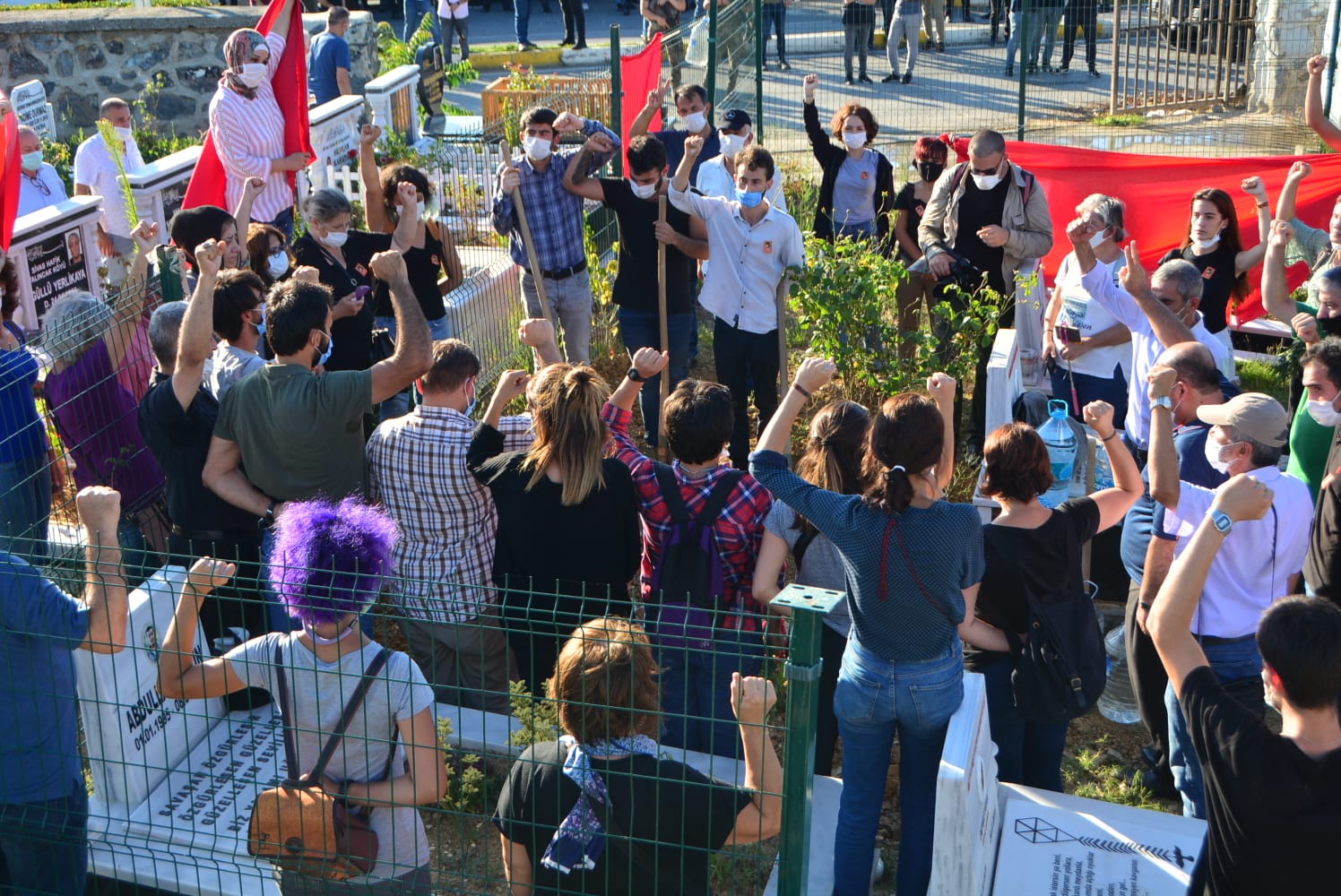 Koray Aspir için defin işlemlerinden sonra bir dakikalık saygı duruşu yapıldı, ardından kitle sloganlar atarak dağıldı.