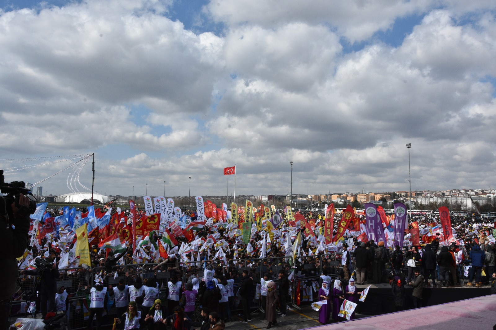 Metro çıkışlarında polis tarafından oluşturulan arama noktalarının yanı sıra İstanbul Newroz Tertip Komitesi tarafından belirlenen görevliler ayrı bir arama noktası kurdu. Polisin engelleyici tutumuna rağmen kitle, pankart ve flamalarıyla alana giriş yapıyor.