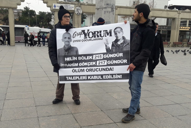 Grup Yorum üyesi Helin Bölek 215, İbrahim Gökçek ise 217 gündür ölüm orucu direnişinde. Bölek ve Gökçek Grup Yorum üzerindeki baskıların kaldırılması, üyelerinin “gri listeden” çıkarılması ve tutsak olanların da serbest bırakılması talepleriyle süresiz açlık grevine başlamış, bir süre sonra eylemlerini ölüm orucu direnişine çevirmişti.