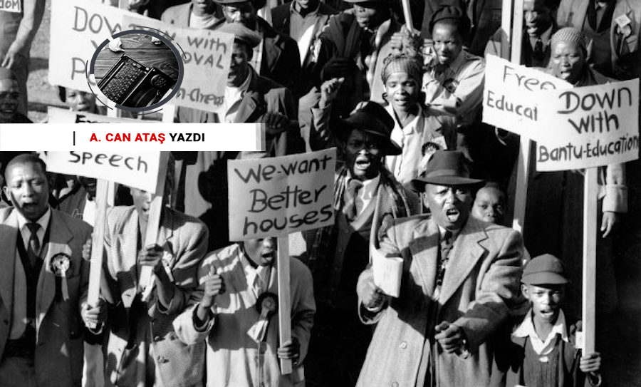 Güney Afrika’da 50’li yılların başından itibaren “Kimlik Yasasının” en katı şekilde ve her defasında “yeni” ek yasal uygulamalarla daha baskın hale getirildiği bir süreç yaşanır. Sınır tanımaz bu uygulamalarla kıta emperyalist güçlerce kontrolde tutulmak istenilir ve bir bütün olarak adım adım tüketilen bir coğrafyaya dönüştürülür. Afrika halklarının unutamayacağı en büyük trajedi ise, “1955’de 54 ülkeden ancak 5’i bağımsız” (1) veya yarı bağımsız diyebileceğimiz bir statü konumunda olurken ve geri kalan diğer ülkeler topluluğu ise bir yok olma hükmüne terkedildiler. Sömürgecilerin sınır tanımaz bu baskı ve yaptırımları sonucu 1955 – 1995 yılları arasında Afrika kıtası bir bilinmezliğin acımasızlığıyla ve de kelimenin tam anlamıyla kan ağlar olmuştur. Ve bu yıllarda 7 milyon insan iç çatışmalarda ve paralelinde dış baskıların etkisiyle yaşamını yitirir. (2) İşgalcilerin böl ve yönet politikası sonucu Afrika’da gerçek anlamda bir “Ortadoğululaşma” örneği yaşanır.