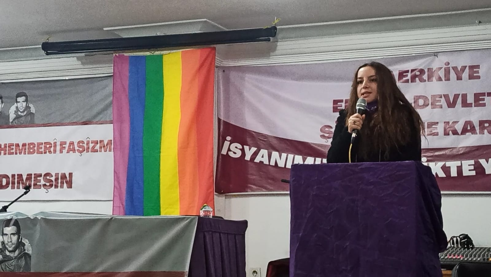 HDP İstanbul İl Eşbaşkanı Elif Bulut da tüm sözlerin pratiğinin bu salonda olduğunu işaret etti. Bulut, “Bunca zamandır yürütülen her mücadele, her deneyim HDP’nin yolları içerisinde buluştu. Birlikte mücadelenin sonunun nereye varacağını Rojava’da gördük. Birlikte mücadele edersek faşizmin nasıl yok olacağını bu topraklarda gördük” diye konuştu.