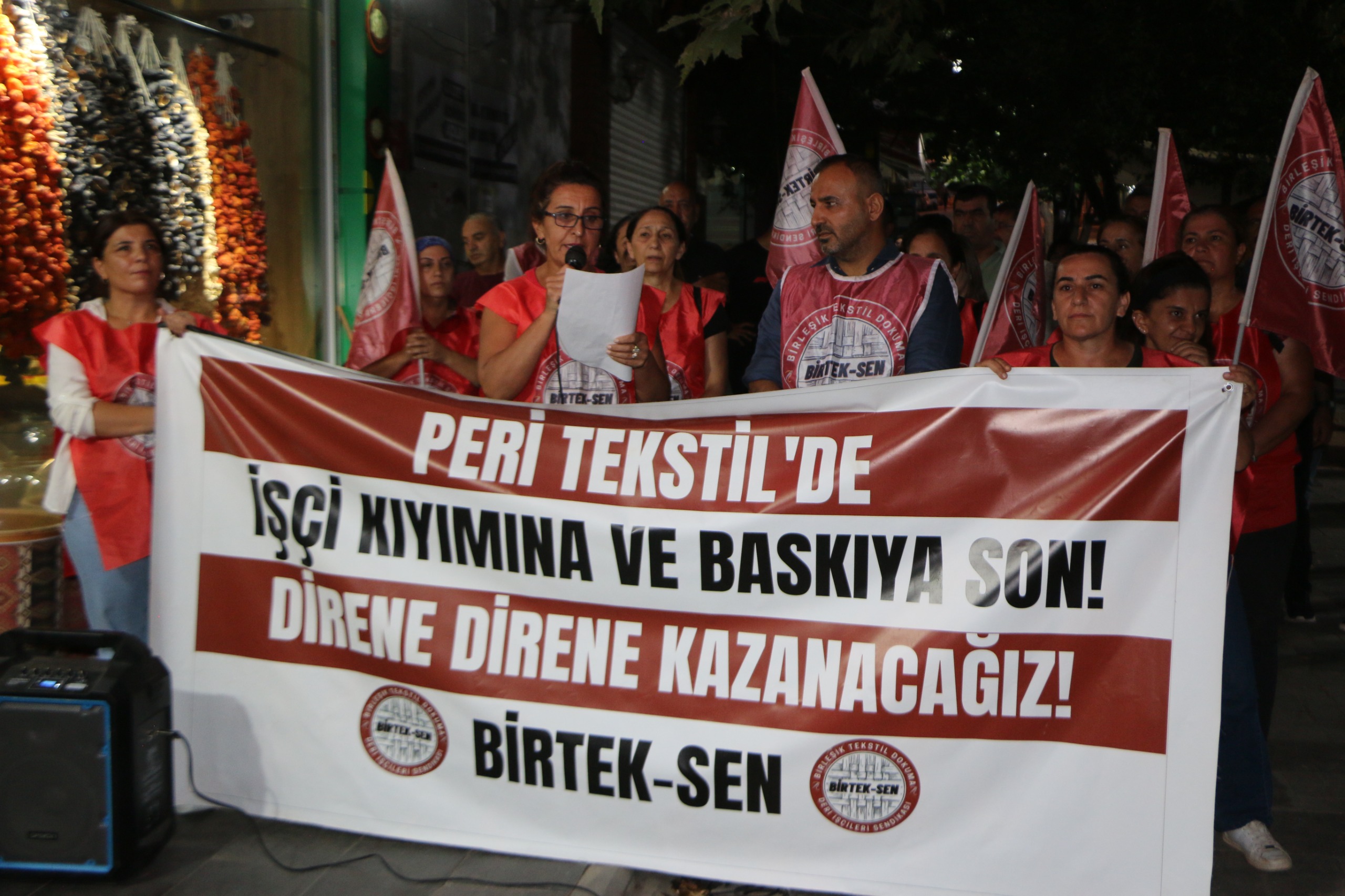 Sanat sokağında yapılan açıklamada patronun sendika istemiyorum, fabrikayı kapattıracaklar, yıllık izinlerini kullandırıyorum söylemlerine değinen işçiler en başından beri görüşme çağrılarını yanıtsız kaldığını belirterek, aldığı teşviklerle fabrikayı kuran patronun işçilerin sırtından para kazandığını, fabrikayı kapattıracaklar diyenin neden sipariş arayışında olduğunu sordular.