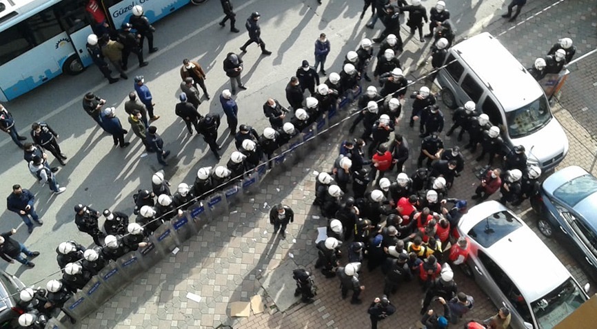 Birleşik Metal-İş sendikasının Gebze 1 No’lu Şube binasının önünde buluşan işçiler “Sendikalaşma hakkı istiyoruz” pankartı açtı. Burda yapılan açıklama sonrası yürümek isteyen işçilere polis saldırdı. Oturma eylemine geçen işçilere polis tekrar saldırdı ve tüm işçileri gözaltına aldı.
