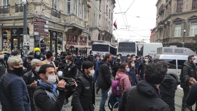 Halkların Demokratik Partisi (HDP) İstanbul İl Örgütü, Demokratik Toplum Kongresi’ne (DTK) yönelik gerçekleşen gözaltı saldırılarını protesto etmek amacıyla dün Taksim Tünel’de yapmak istedikleri açıklamaya polis saldırmış ve aralarında partinin İl Eşbaşkanları Erdal Avcı ve Elif Bulut’un bulunduğu 22 kişi gözaltına alınmıştı.
