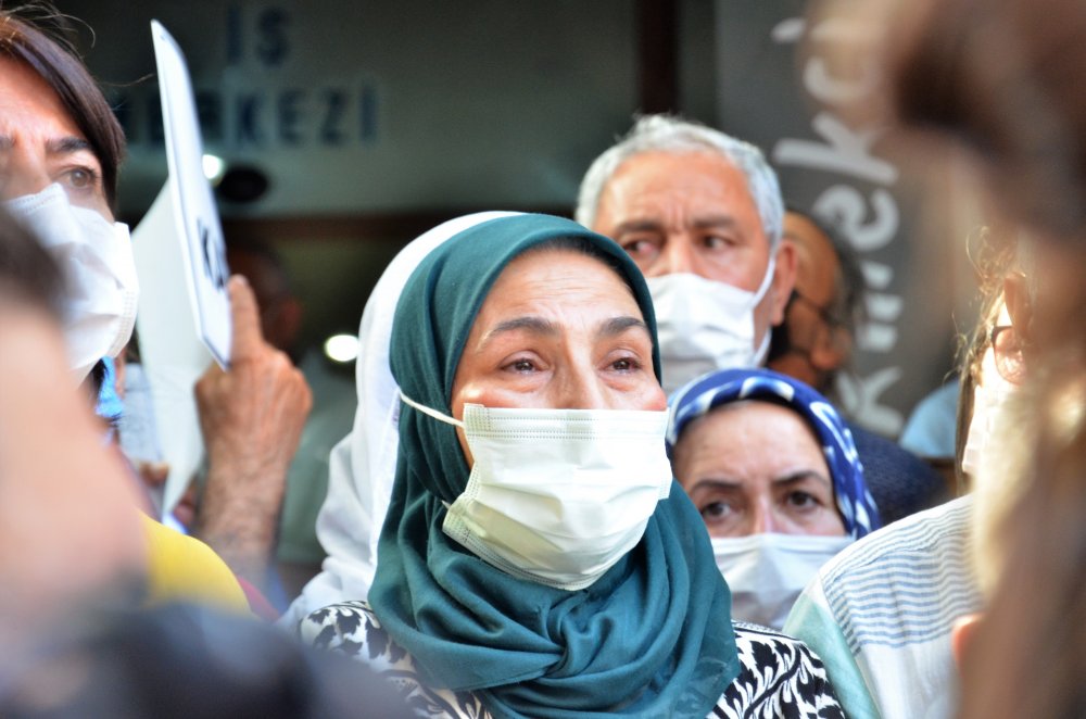 Deniz Poyraz’ın annesi Fehime Poyraz, aralarında milletvekilleri, demokratik kitle, sendika ve kadın örgütü temsilcilerinin de bulunduğu yüzlerce kişiyle konferans salonu önünde bekliyor. Kalabalıktan dolayı duygulanan Fehime Poyraz ise dik duruşundan taviz vermiyor.