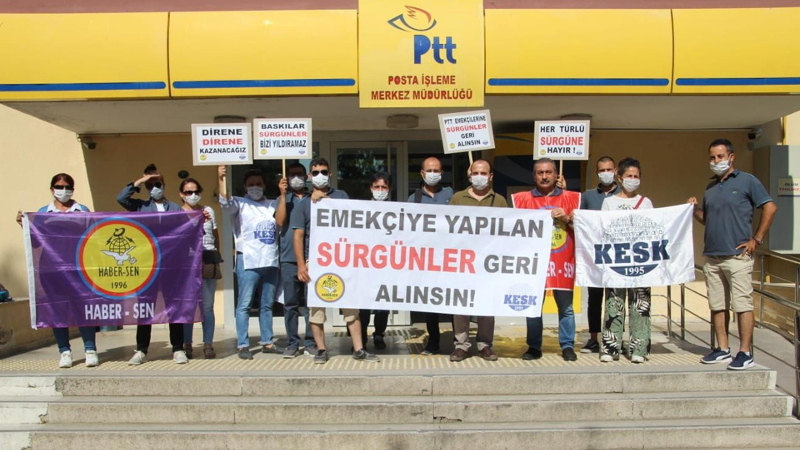 PTT Genel Müdürlüğünün sorumluluğunun tüm toplumun sağlığını tehdit eden pandemi sürecinde hizmet üreten PTT emekçilerinin haklı taleplerini karşılamak olduğunu dile getiren Zengin, “Tam tersine; sendikal hak ve özgürlükler çerçevesinde dile getirilen nitelikli kamusal hizmet talebini ve sendikal faaliyetleri kriminalize etmek değildir. Şube yöneticilerimizin ve üyelerimizin sürgünlerinin durdurulmasını ve yeniden eski görev yerlerine dönmelerini talep ediyoruz” dedi.