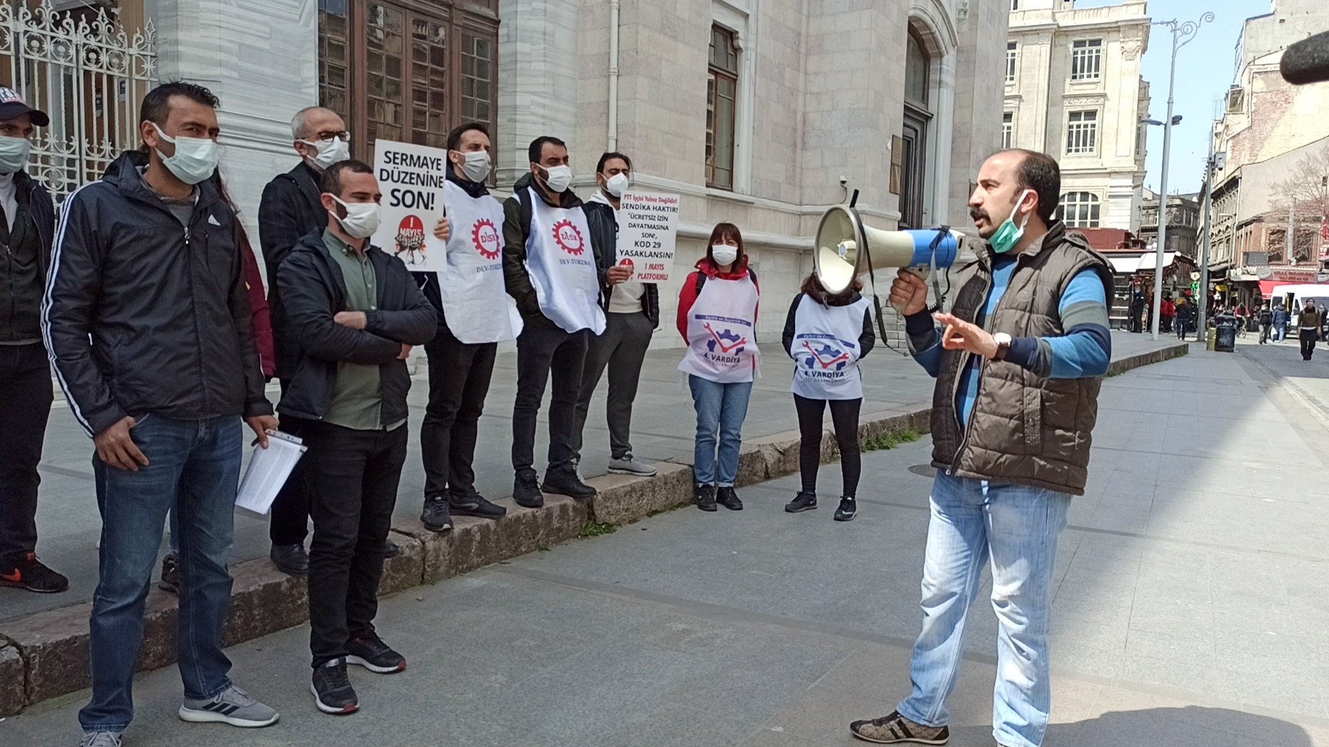 Eylemde basın açıklamasını okuyan PTT-SEN Genel Başkanı Halit Büyük, “Biz taşeron işçilerin bu mücadelesinin bir bedeli olacağını en başından beri biliyorduk. Bu bağımsız sendikalaşma çabamız ve ulaştığımız başarı PTT yönetimini, Taşeron şirketleri ve sarı sendikaları öyle korkutmuş olacak ki geçtiğimiz Ağustos ayında başlayan yeni ihale dönemiyle birlikte yöneticilerimizin bir kısmının sözleşmeleri yenilenmedi. Devam eden süreçte ise kalan yöneticilerimiz ve birkaç işyeri temsilcimiz ya ücretsiz izne çıkarıldı ya da Kod-29’la işinden edildi. Bu saldırının en büyük sebebi herkesin küçük gördüğü başaramazlar dediği taşeron işçilerin bağımsız sendika PTT-SEN’in önceki dönem iki şirketle toplu iş sözleşme imzalaması, taşeron işçilerin neredeyse PTT’nin kendi sözleşmeli personeli kadar maaş almasını sağlamasıdır. Kime ne kadar dert olursa olsun PTT taşeron tarihinde kimsenin başaramadığını bağımsız sendika olarak biz başardık toplu iş sözleşmesi imzaladık ve hiçbir taşeron işçi bunu bir an olsun unutmuyor” dedi.