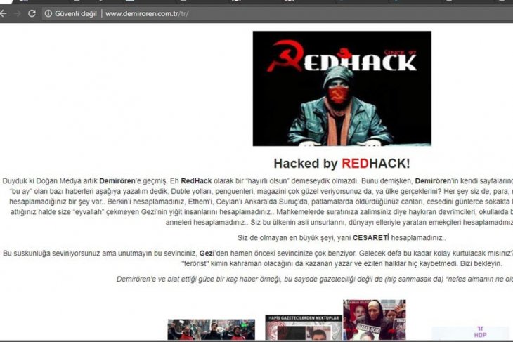 RedHack, iktidara yakınlığıyla bilinen ve Doğan Medya Grubu’nu satın almasıyla gündeme gelen Demirören Holding’e ait siteleri hackledi