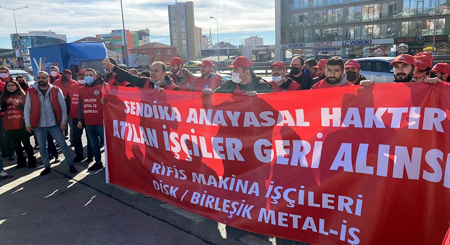 İstanbul Kartal’da faaliyet gösteren Rifis Makina’da çalışan ve Birleşik Metal-İş Sendikası’nda örgütlenen işçilerden 8’i, 27 Aralık 2021’de işten çıkarıldı. Hiçbir hakkını alamayan işçiler, 3 Ocak tarihinde işe geri alınma ve sendikal hakları için işyeri önünde eyleme başladı. İşçiler, her gün saban saat 07.00’den 17.30’a kadar işyeri önüne gelerek, haklarını talep ediyor.