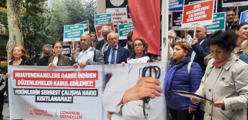 İstanbul Tabib Odası, İstanbul İl Sağlık Müdürlüğü önünde, “hekimlerin serbest çalışma hakkı kısıtlanamaz talebiyle” basın açıklaması düzenledi. 22 meslek örgütünün imzacı olduğu açıklama da, hekimlerin serbest çalışma hakkını kısıtlayacak olan düzenlemenin geri çekilmesi için mücadele edeceklerini kaydetti.