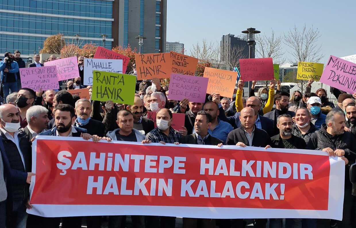 Kamçı, şöyle devam etti: “Bizler yıllarca elektriği, suyu, doğal gazı, yolu olmayan, yok sayılan Şahintepe halkıyız. İşçi ve emekçilerin yoğunlukta olduğu mahallemizde birçok şeyi kendi imkanlarımızla yaptık. Tabiri caizse geldiğimizde buralar tarlaydı. Önce evlerimizi yaptık, vergilerimizi verdik. Çocuklarımız okula; bizler ise işimize çamurlu yollardan gittik. Mahallemizi, biz inşa ettik. Bugün bizi arsadan ibaret görenlere sesleniyoruz, biz buradayız. Bin bir emekle inşa ettiğimiz mahallemizi, komşuluklarımızı, dostluklarımızı, evlerimizi yok sayamazsınız.”