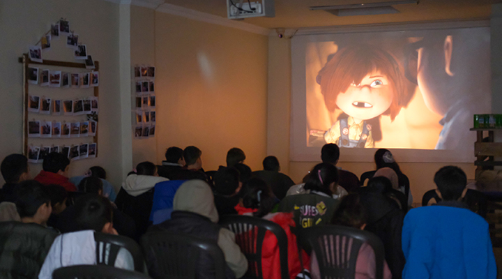 Gösterimde, yaşlı bir adamın ve küçük bir çocuğun hayallerini gerçekleştirmek için Güney Amerika’da maceraya atıldıkları bir animasyon filmi olan Yukarı Bak (Up) filmi izlendi. Film gösteriminde çocuklara patlamış mısır ve meyve suyu ikram edildi. Mahallelerinde ilk defa düzenlenen sinema gösterimine karşı çocukların heyecanı gözlerinden okundu.