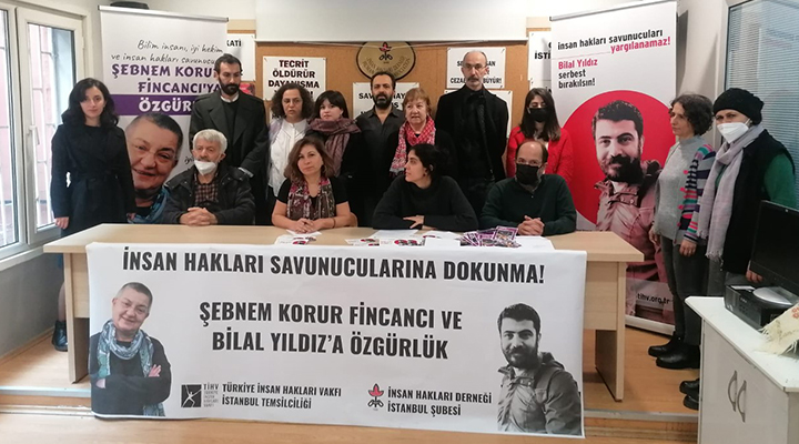 Türkiye İnsan Hakları Vakfı (TİHV) ve İnsan Hakları Derneği (İHD), cezaevinde tutulan Türk Tabipleri Birliği (TTB) Merkez Konseyi Başkanı Prof. Dr. Şebnem Korur Fincancı ile TİHV çalışanı Bilal Yıldız’ın serbest bırakılması amacıyla İHD Şubesi’nde açıklama yaptı. Açıklamada, “Bilim insanı, iyi hekim ve insan hakları savunucusu Şebnem Korur Fincancı’ya özgürlük” ve “Hak savunucuları yargılanamaz” dövizleri taşındı. Kaldıraç Hareketi, Sosyal Hizmetler Uzmanı Derneği ve Hafıza Merkezi de açıklamaya katıldı.