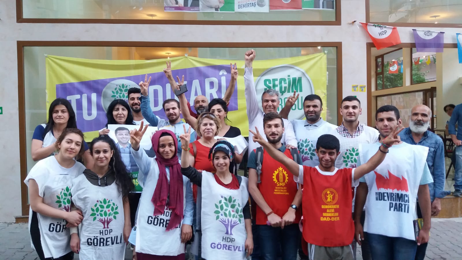 Kocaeli Darıca’da ise SMF ve HDP ortak seçim çalışması yürüttü. Stand açımı ve bildiri dağıtımı yapılan seçim çalışmasında HDP’nin tutuklu cumhurbaşkanı adayı Selahattin Demirtaş ve HDP için oy çağrısında bulunuldu.