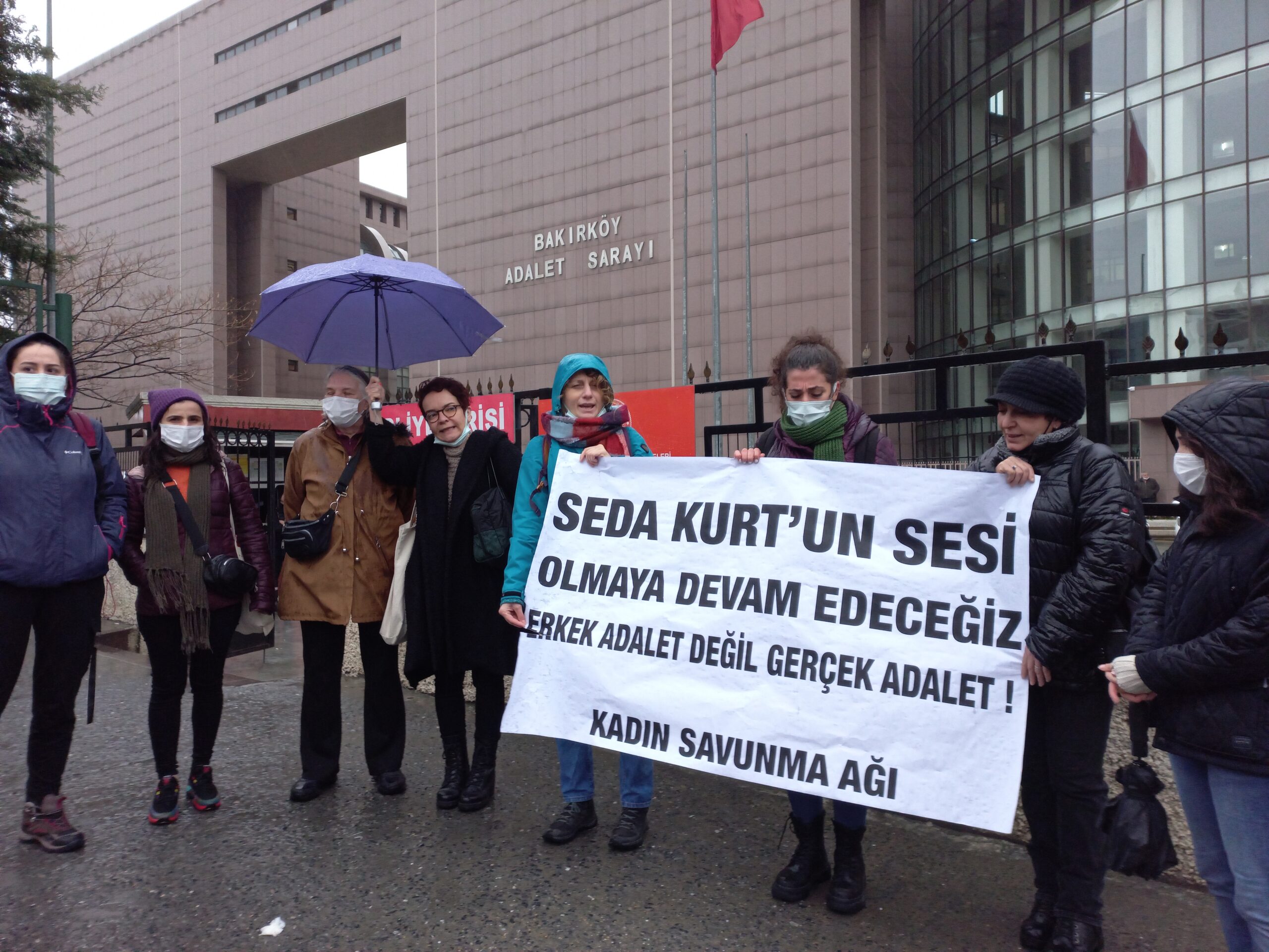 Sendika.org’un haberine göre; Adliye önünde yapılan konuşmada, “Seda Kurt için adalet aramaya devam ediyoruz. Tam iki buçuk yıldır Seda Kurt davasında hiçbir gelişme kaydetmiş değiliz. Daha önceki kadın cinayetlerinden biliyoruz ki katiller ya ellerini kollarını sallayarak dolaşmakta ya da yurtdışına kaçmakta. Ercan Akkaş, Seda Kurt’u öldürdükten sonra 8 ay boyunca bu mahkeme kapılarında yakalama kararı çıkartmaya çalıştık. 8 ay boyunca karar çıkmadı ve Ercan Akkaş’ın göz göre göre yurtdışına kaçmasına seyirci kalındı. Bizler Seda’nın sesi olmaya Seda için adalet aramaya ve katilinin bulunup yargılanmasını istemeye devam edeceğiz” denildi.
