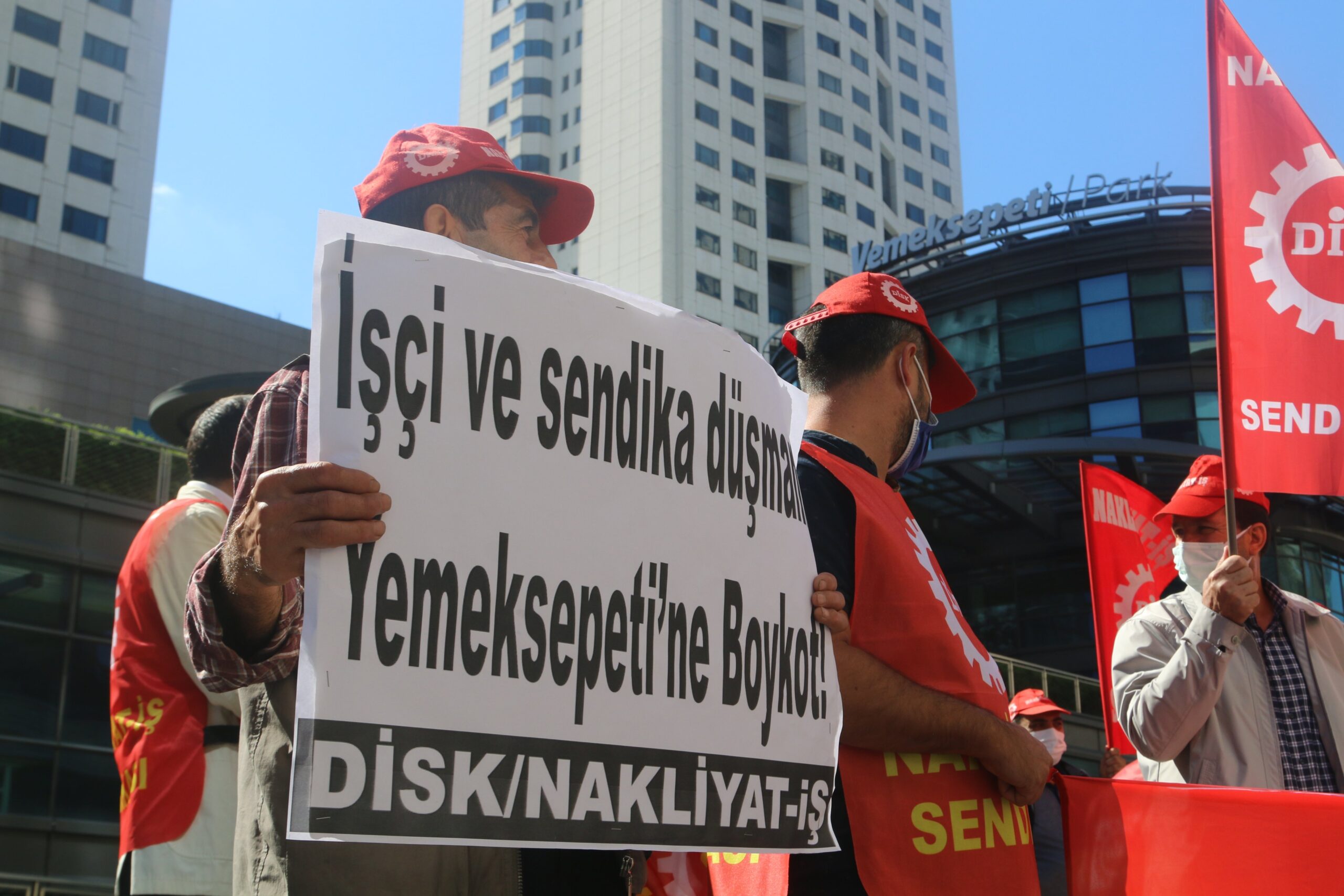 Türkiye Devrimci Kara, Hava ve Demiryolu İşçileri Sendikası’na (Nakliyat-İş) üye oldukları gerekçesiyle Yemeksepeti firmasındaki işlerine son verilen işçiler için İstanbul Şişli’de bulunan Yemeksepeti Genel Merkezi binası önünde açıklama yapıldı. Tüketici Birliği Federasyonu (TBF), Devrimci İşçi Sendikaları Konfederasyonu (DİSK), Kamu Emekçileri Sendikaları Konfederasyonu (KESK), Türk Mühendis ve Mimar Odaları Birliği (TMMOB) ve Türk Tabipleri Birliği (TTB) tarafından yapılan açıklamaya çok sayıda kişi katıldı. Açıklamada, “Halkımızı işçi ve sendika düşmanlığı yapan Yemeksepeti’ni boykota çağırıyoruz” yazılı pankart açıldı. Açıklamada sık sık “Direne direne kazanacağız” ve “Yaşasın işçilerin birliği” sloganları atıldı.