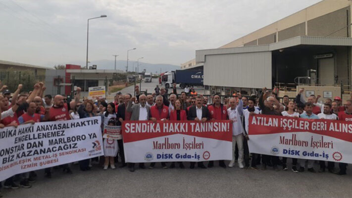 İzmir’de sendikalaştıkları için işten çıkartılan Marlboro işçileri,47 gündür direnişlerine devam ediyor.