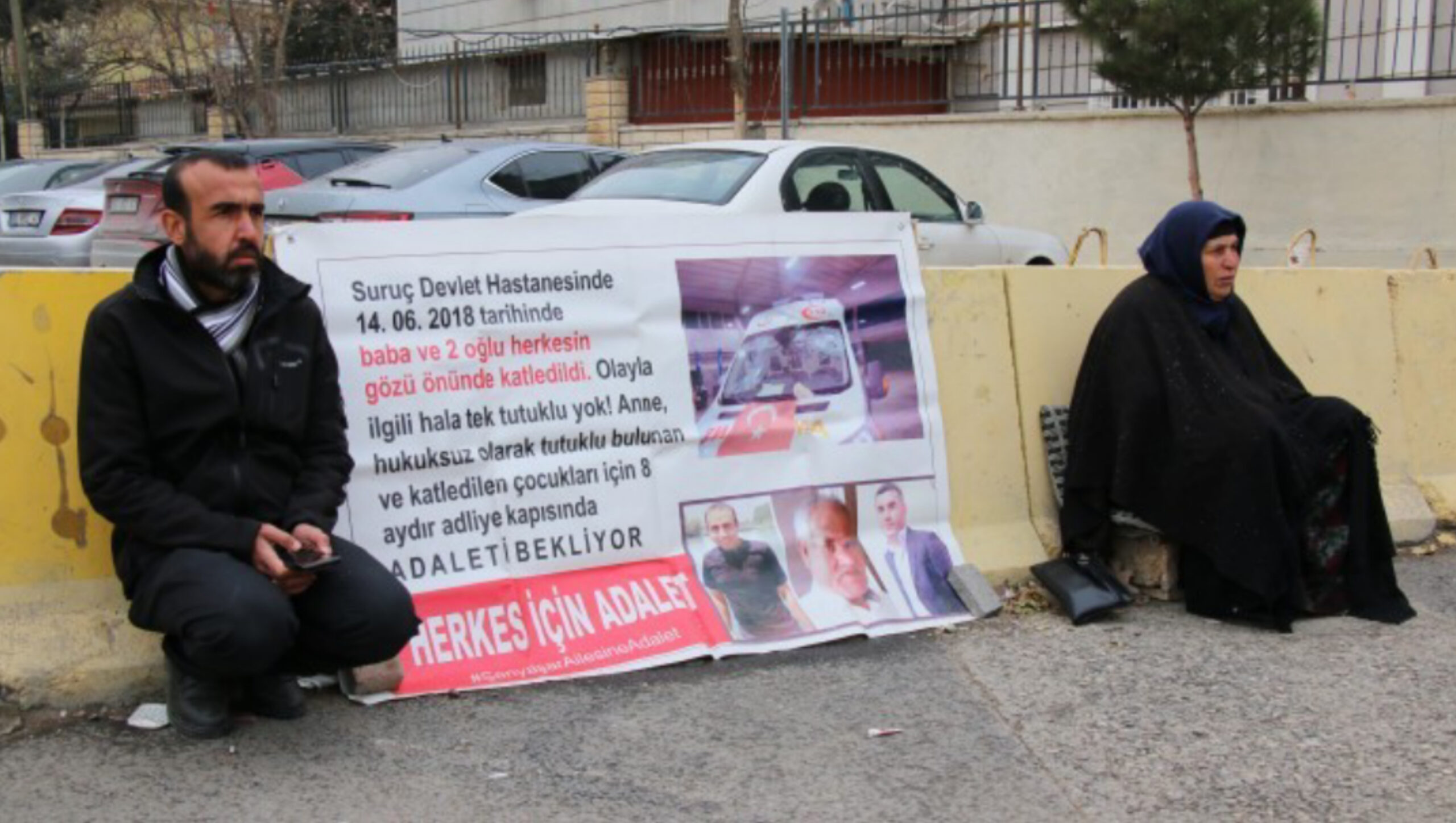 Urfa’nın Suruç ilçesinde 14 Haziran 2018 tarihinde AKP Milletvekili İbrahim Halil Yıldız’ın koruma ve yakınlarının saldırısı sonucu eşi ve iki oğlunu yitiren Emine Şenyaşar ile saldırılardan yaralı kurtulan oğlu Ferit Şenyaşar’ın, Urfa Adliyesi önünde 9 Mart’ta başlattığı Adalet Nöbeti 355’inci gününde devam ediyor.