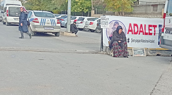 Urfa’nın Suruç ilçesinde 14 Haziran 2018 tarihinde AKP Milletvekili İbrahim Halil Yıldız’ın koruma ve yakınları tarafından eşi ve iki oğlu katledilen Emine Şenyaşar ile saldırılardan yaralı kurtulan oğlu Ferit Şenyaşar’ın, Urfa Adliyesi önünde 9 Mart 2021’de başlattığı Adalet Nöbeti 631’inci gününde devam ediyor.