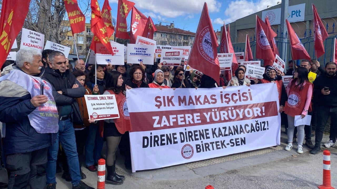 “İstanbul, Çorlu ve Tokat’taki binlerce Şık Makas işçisi adına Çalışma Bakanlığı önünden bir kez daha seslenildiğini söyleyen Kara, “Ödenmeyen alacaklarımızın tamamı ve tazminatlarımız derhal ödensin. Son 2 yıl içinde tazminatsız şekilde işten atılan yüz binlerce tekstil işçisi ve yıllardır çalışıp hak ettiği tazminatı almak için kılı kırk yaran milyonlarca işçi adına Çalışma Bakanlığına sesleniyoruz. Kıdem tazminatı hakkı güvenceye alınsın. İşçilerin kasasından patronlara teşvik aktarmaktan vazgeçin. İşçilerin emeğinden ve kasasından gasp edilen sermayeyle yurt dışına yatırım yapılmasının önüne geçilsin. İşçilerin tazminatına ve işsizlik maaşına çökmek için kullanılan kod sistemi değiştirilsin, işçilerin beyanı esas alınsın. Patronları değil işçileri koruyan yasal düzenlemeler yapılsın” taleplerini dile getirdi. Kara, Tokat, Çorlu ve İstanbul’daki Şık Makas işçilerinin haklarımızı alana kadar mücadelelerinin süreceğinin altını çizerek “Direne direne kazanacağız” dedi.