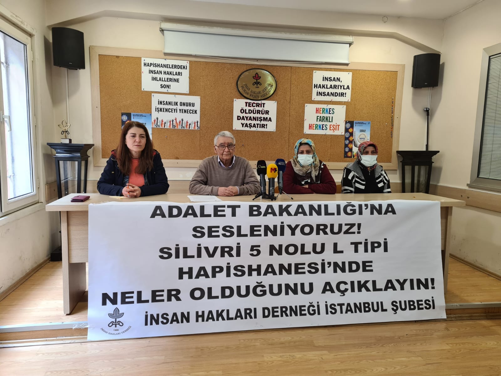 Tutuklu yakınları Fatma Ağca, Avniye Çetin ve Halkların Demokratik Partisi (HDP) Milletvekili Züleyha Gülüm’ün katıldığı toplantıda, “Adalet Bakanlığı’na sesleniyoruz! Silivri 5 No’lu L Tipi Hapishanesi’nde neler olduğunu açıklayın!” yazılı pankart asıldı.