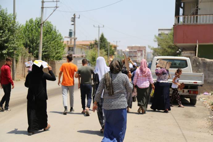 Kesintilere tepki veren kadınlardan Sebahat Nas “Ya hepimizin elektriğini kessinler, ya da bizim elektriğimizi kesmesinler” diyerek, yaşadıkları mağduriyete dikkat çekiyor.
